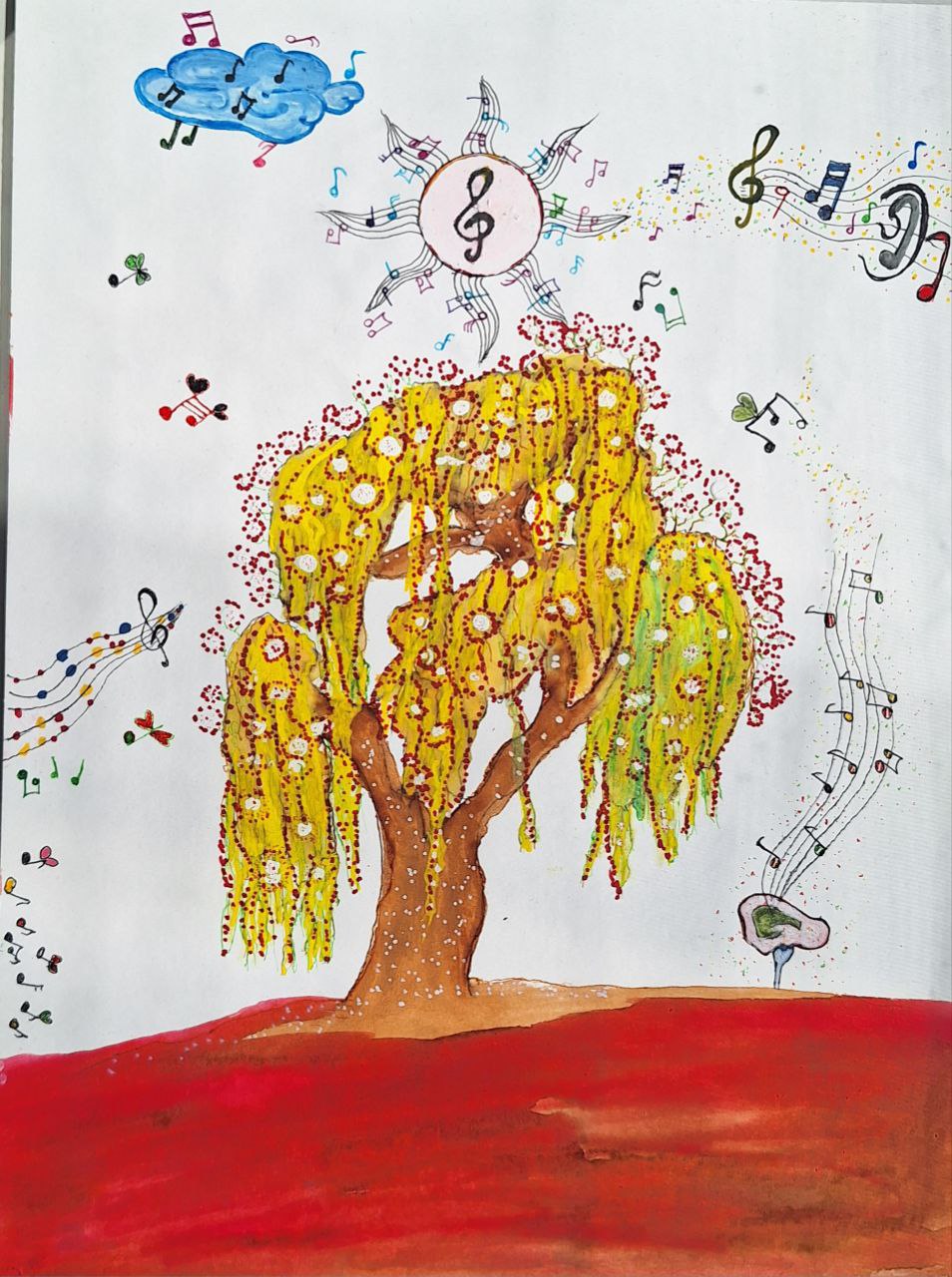 In den Hauptstadtvögeln gibt es einen Künstler namens Ronald. Er malt wirklich süße, schöne und lustige Bilder. Ich dachte sofort: Der ist genau richtig für die Ohrenweide! Vielfalt, Blüten, Bienen, ein paar Noten – so in etwa stellte ich mir das vor.